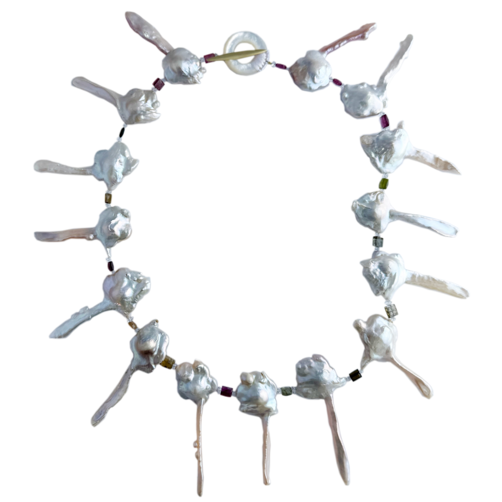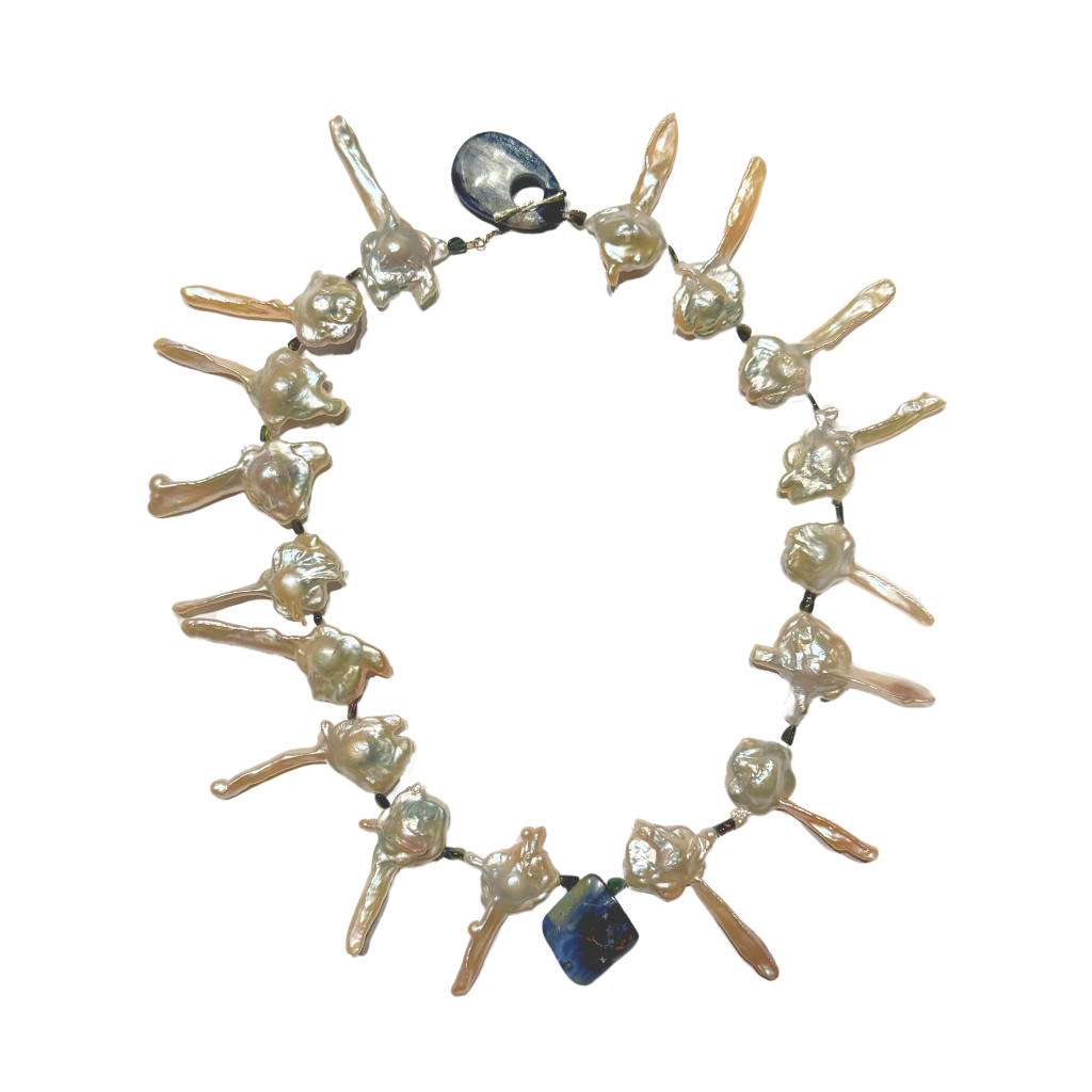 18k Gold, Key Pearl, Kyanite, and Opal Necklace $3,000.00 Pavé The Way® Jewelry
