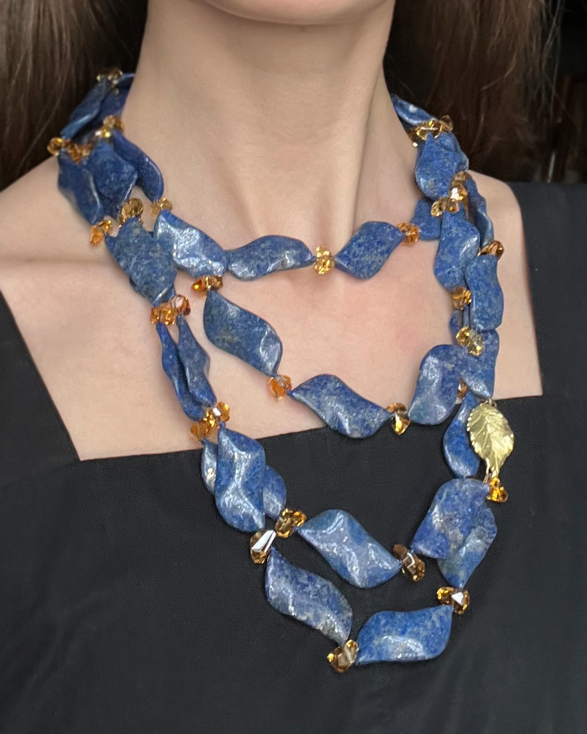 4-Strand Lapis Leaf Necklace $3,200.00 PHILANTHROPY IS BEAUTIFUL® JEWELRY BY JOAN HORNIG